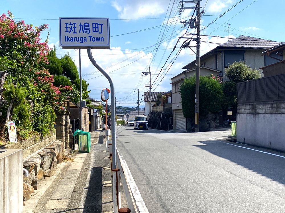 坂を下りきったところでは住宅もまばらになり、工場や郊外型店舗も見えだしてきた。北側を見ると山並みが迫るが、これが前回のラストで王寺駅に向かう途中、明治橋で見た山並みで松尾山だ。厄除けで有名な松尾寺をいただく松尾山(標高315m)の南の山裾に当たる。河内や大和では厄除けといえば松尾寺で、厄年の折には必ずと言ってよいほどお参りに行った。その北方にある矢田寺にはアジサイの季節にはよく行ったものだ。ああそうそう、その途中にあった奈良高専前の「御幸」という蕎麦屋、花見の折には必ず立ち寄ったが、まだあるだろうか。さらに北方の瀧川神社、矢田寺、松尾寺と松尾山系は修行の場でもあったが、これらの寺社には厳しさと霊験あらたかな雰囲気がある。その南端に法隆寺が立地するわけだが、この地に法隆寺が設えられた理由はその霊験あらたかさにあるのだろうか。それはまた考えるとして、ググっと法隆寺に近づいてきたことを思い知らされるのである。
