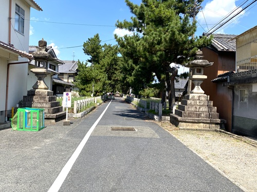 西側に立派な勢野保育園が建つが、この辺りまで寺域であったと思われる。保育園沿いを南へ行き、踏切を渡って勢野の町中に入る。高台の平隆寺からの南斜面に勢野の町が広がっているが、坂の上部では大きい敷地の邸宅が多く、路地道や細い坂道が入り組む。今は近鉄生駒線の信貴山坂下駅周辺が町役場もあり行政の中心地だが、古代から中世の時代には、平隆寺のあるこの辺りが勢野の中心地だった。そのように思われる街並みなのである。